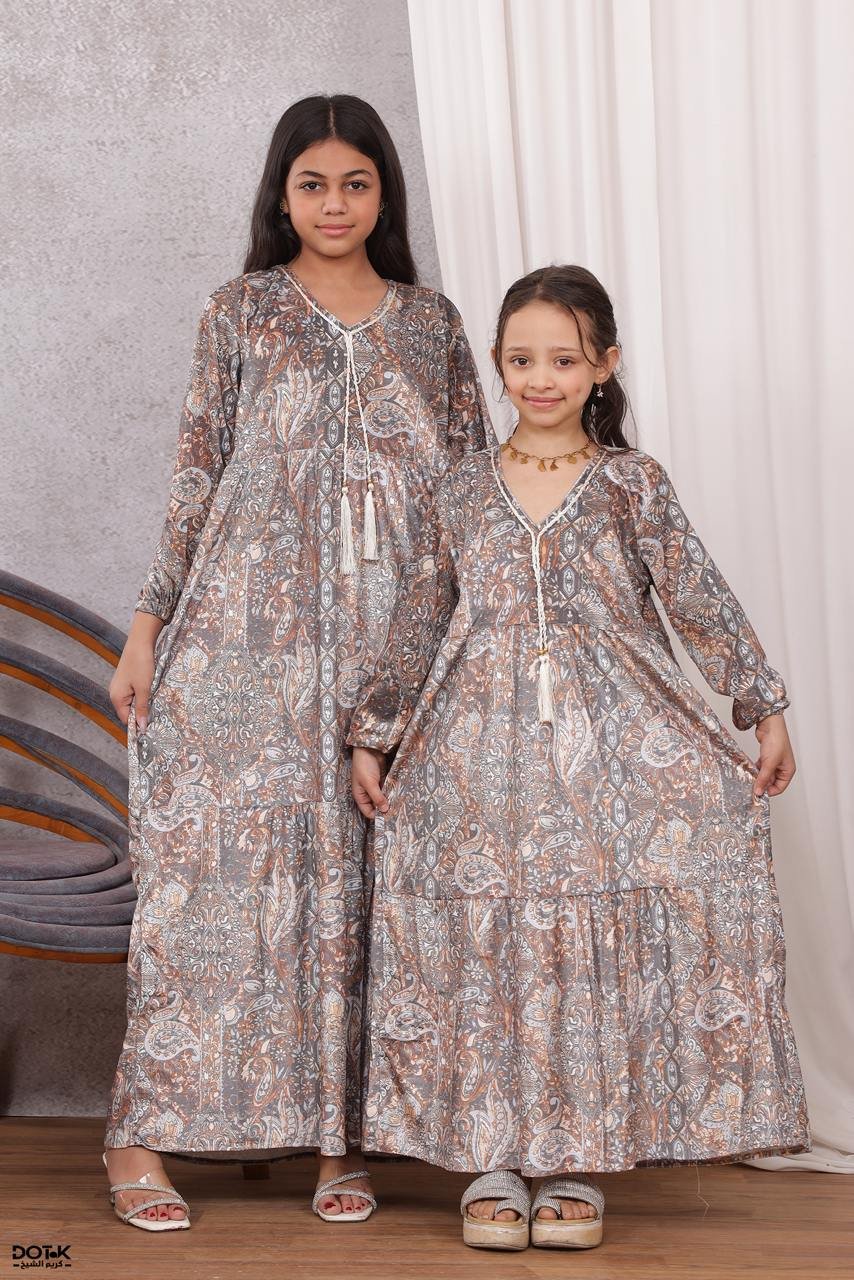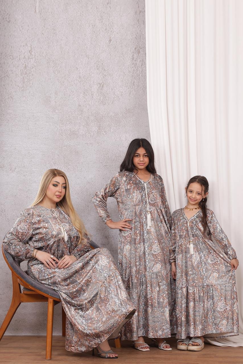 موديل فستان بناتي مخمل كود 0607 – رمادي