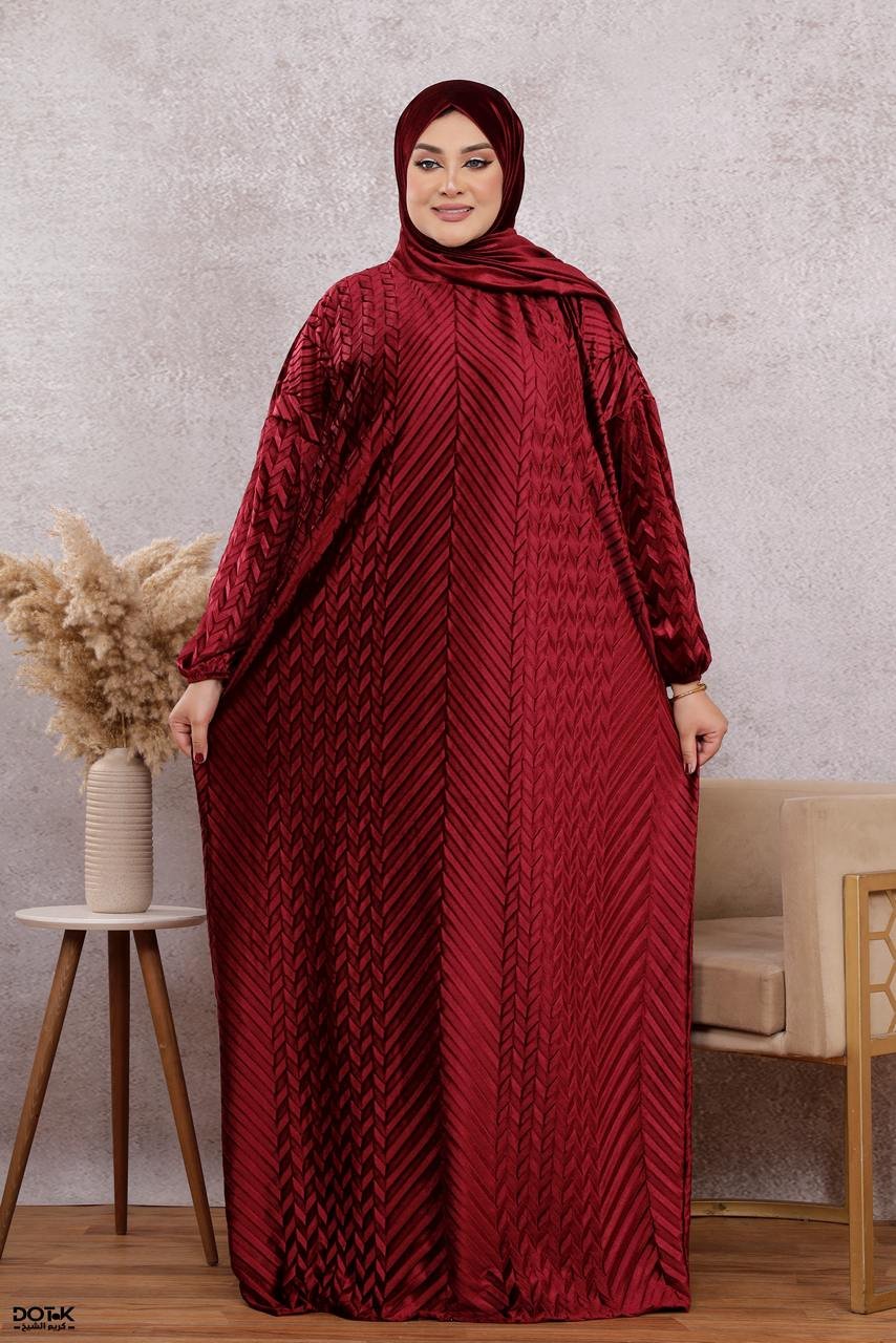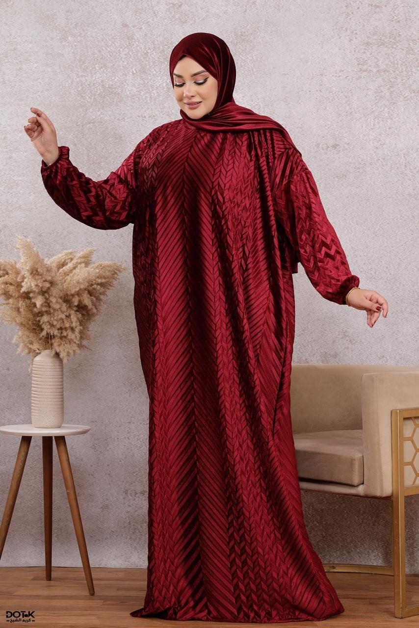 اسدال ثوب صلاة شتوي بليسيه فري سايز كود 0526 – عنابي