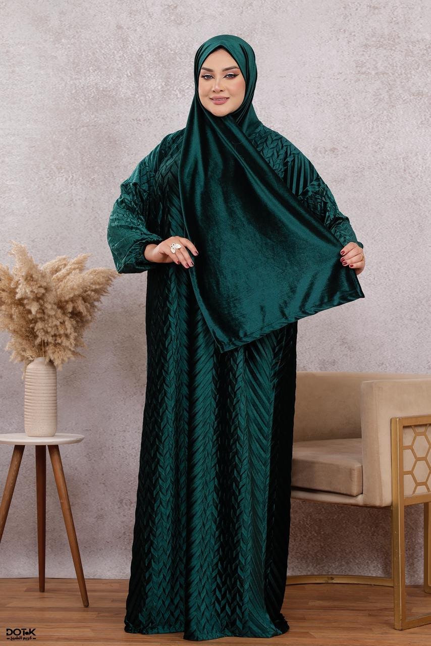 اسدال ثوب صلاة شتوي بليسيه مضغوط فري سايز تلبيس اي مقاس مع طرحة متصله خامه بليسيه شتوي مضغوطة بشكل مزخرف جوده عاليه