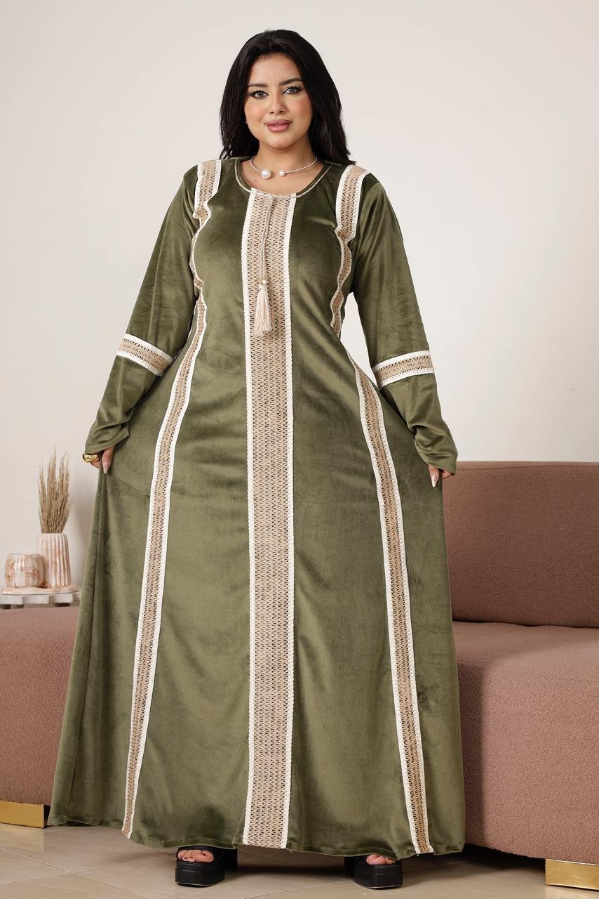 موديل شتوي مخمل ( قطيفه ) تطريز كلفه سواريه خارجي تركيب هاند ميد خام مخمل ( قطيفه ) ثقيل ناعم جوده عاليه مقاسات ارقام 1 و 2 رقم 1 محيط 48 تقريبآ تلبيس لارج وسيع وزن 80 رقم 2 محيط 53 تقريبآ تلبيس حتي 3 اكس لارج مقاس عريض غسيل عادي طول 58 تقريبا