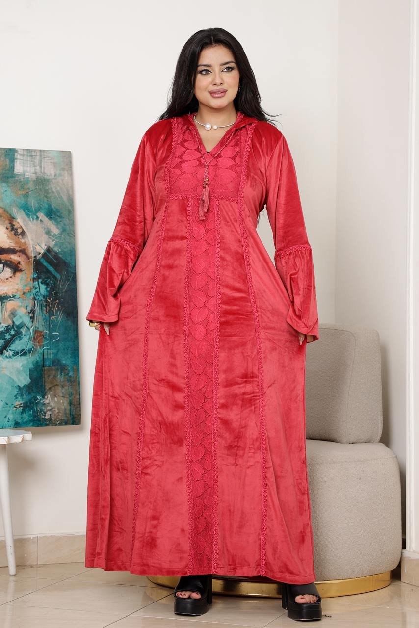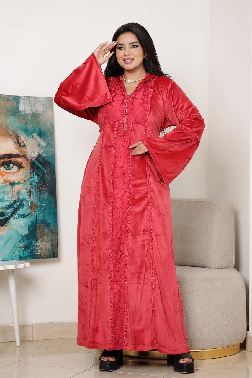 موديل شتوي مخمل ( قطيفه ) مع كاب وتطريز سواريه كلفه يدوي هاند ميد
