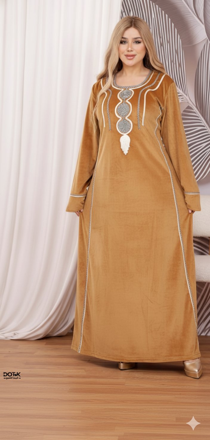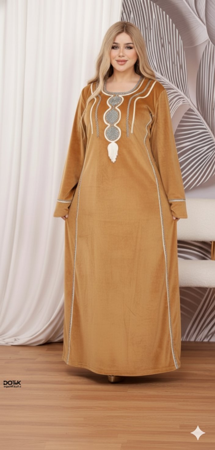 موديل شتوي تطريز اقطان هاند ميد خام مخمل ( قطيفه ) ثقيل ناعم جوده عاليه مقاسات ارقام 1 و 2 رقم 1 محيط 49 تقريبآ تلبيس لارج وسيع وزن 80 رقم 2 محيط 55 تقريبآ تلبيس حتي 3 اكس لارج مقاس عريض غسيل عادي طول 58 تقريبا